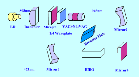 Nd:YVO4 low Power blue cw Laser